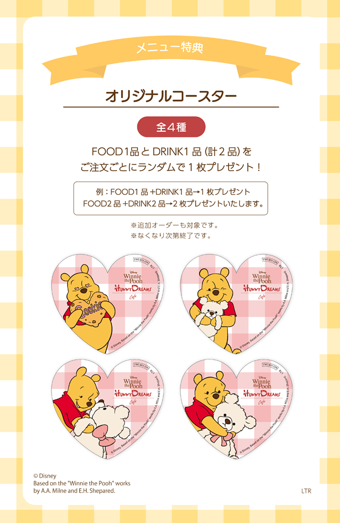 FOOD1品とDRINK1品(計2品)をご注文ごとに「オリジナルコースター(全4種)」をランダムで1枚プレゼント!