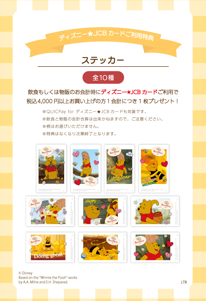 ディズニー★JCBカードを1会計につき税込4,000円以上ご利用いただいた方に先着で「ステッカー(ランダム10種)」をランダムで1枚プレゼント!